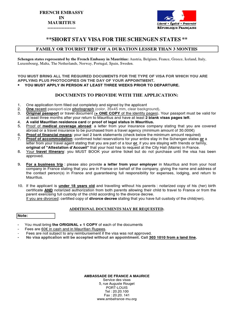 Short Stay Schengen Visa Ambassade De France